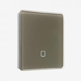 Сенсорный одноканальный беспроводной выключатель. Выполнен из закаленного стекла в лаконичном современном дизайне. При нажатии издает звук. Работа от одной батарейки более 7 лет. Частота 868 МГц, на которой работает выключатель, позволяет управлять освещением на расстоянии до 250 м. Представлен в 11 цветах: алюминиевый, бежевый, графит, светло-коричневый, светло-серый, серо-голубой, серый, слоновая кость, темно-коричневый, черный, белый.